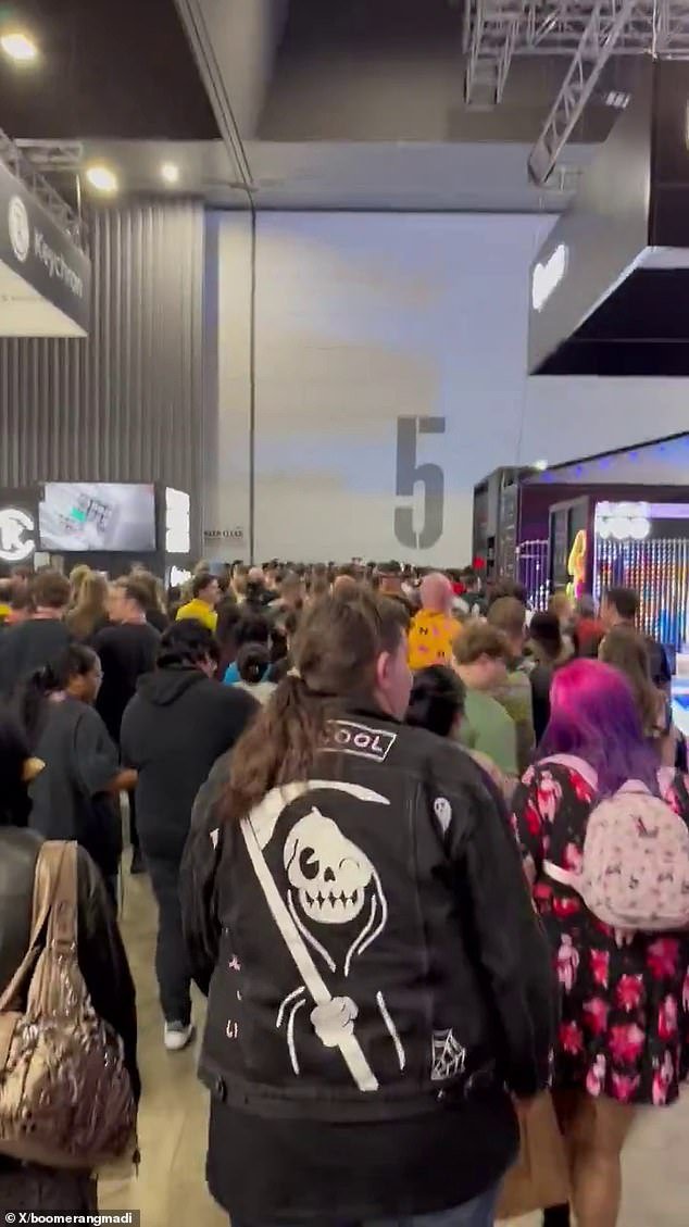 Centenas de participantes de uma popular convenção de jogos foram evacuados do Centro de Convenções de Melbourne (na foto, multidões saindo do centro).