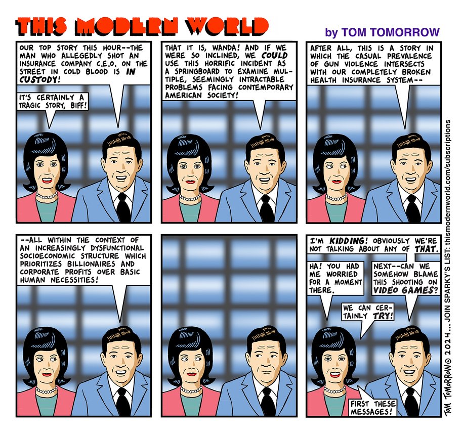 Como sempre, se Se você considera meu trabalho valioso, ajude a mantê-lo sustentável assinando meu boletim informativo semanal, Lista de Sparky! Você terá uma prévia dos desenhos animados a cada semana, além de notícias e notas do Mundo de Amanhã. Não esqueça de assistir Shopping de mercadorias Tom Tomorrow Para um subconjunto muito específico de suas necessidades de compras de fim de ano!