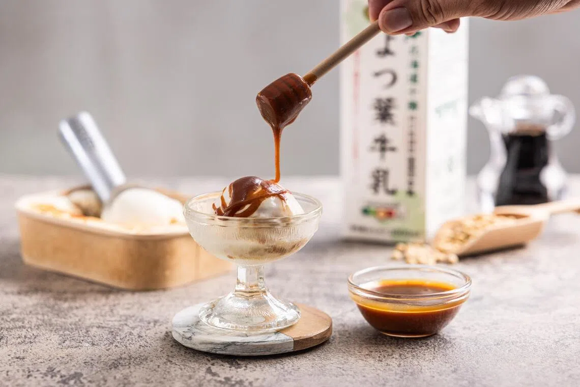 No Japão, o sorvete costuma ser servido com molho de soja em cafés, fabricantes de molho de soja e lojas. Não é muito comum aqui. No começo pensei que era demais, mas depois o cheiro de caramelo atingiu minha língua. Então você pode sentir o umami. Depois, há a nota esfumaçada. Eu gostaria que estivesse disponível o ano todo.