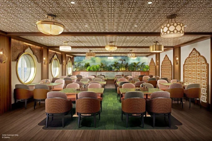 Inspirado na arte conceitual inicial de The Jungle Book da Disney, o Mowgli’s Eatery apresenta um menu que se concentra na culinária indiana aromática e inclui uma variedade de pratos vegetarianos. No Stitch’s Ohana Grill, as famílias podem desfrutar de pratos americanos saudáveis, incluindo hambúrgueres, em uma decoração havaiana descontraída, completa com pranchas de surf e folhas de palmeiras tropicais.