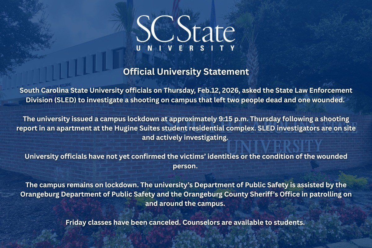 O estado da Carolina do Sul, que matricula mais de 3.000 estudantes, é uma das duas universidades historicamente negras em Orangeburg, Carolina do Sul – uma cidade universitária à beira-rio, a cerca de 64 quilômetros a sudeste da capital do estado, Columbia. A outra é a Universidade Claflin.