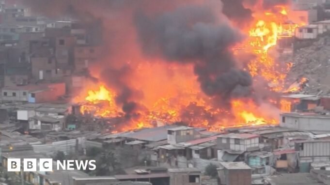 A mídia local disse que um grande incêndio destruiu mais de uma dúzia de pessoas em um bairro de Lima.