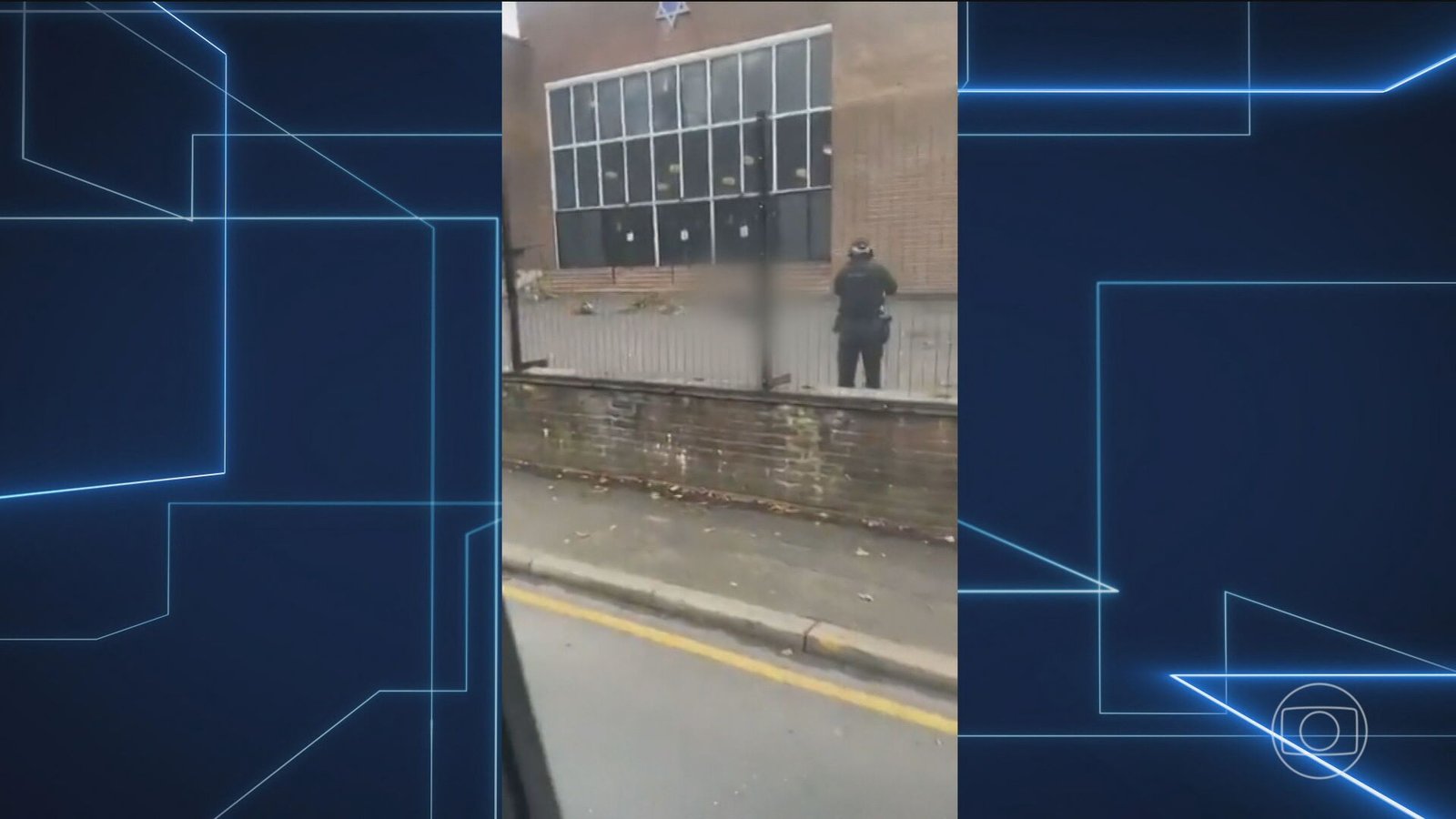 Em Manchester às 7:30 da manhã. O sinagoget estava cheio. O edifício fica na parte norte da cidade. O terrorista dirigiu um carro preto alto e prosseguiu para as pessoas externas. E testemunhas disseram que saiu do carro e começou a esfaquear a calçada. Duas pessoas foram mortas em estado crítico e quatro foram levadas para o hospital.