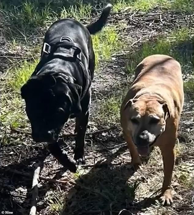 Marcus Norton estava passeando com o cachorrinho Mastiff, Chief (à esquerda), e o mais velho Staffordshire terrier, Molly (à direita), em uma gaiola ao sul de Perth quando os dois cães foram supostamente esfaqueados.