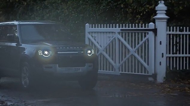 BLO AK Land Rover Defender foi visto saindo de Bishops Gate perto do Royal Lodge em Windsor pouco antes das 8h da manhã de sábado, com a terminação DOY em sua placa.