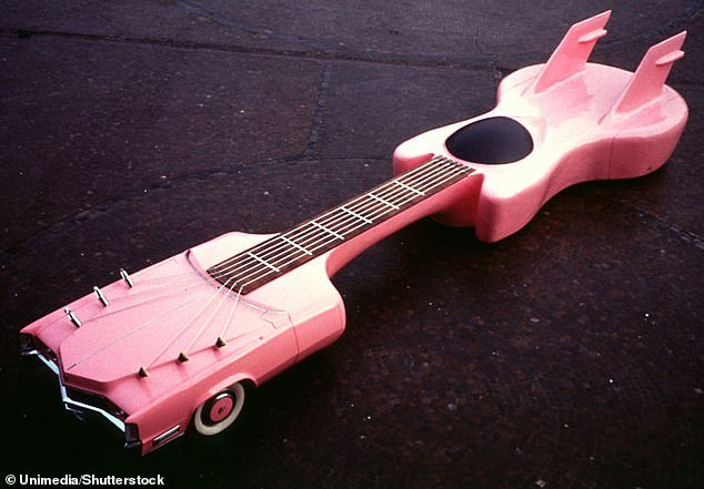Um icônico cadilac rosa em forma de guitarra e 41 pés foi operado pela Elvis Presley no início dos anos 70. FlóridaAssim,