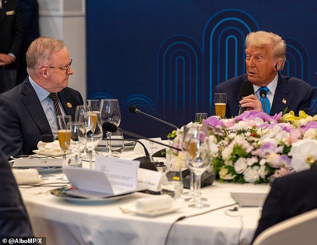 O presidente Trump mirou Albanese nos seus comentários iniciais, alegando que o primeiro-ministro australiano tinha feito um “trabalho fantástico” no acordo de minerais críticos de 13 mil milhões de dólares.