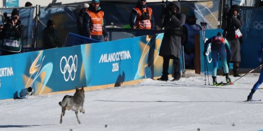 Competidor de quatro patas busca o ouro em evento olímpico de esqui