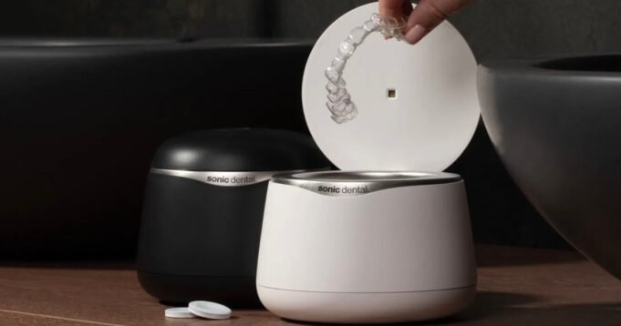 Para usar, preencha o ouro com água fria, adicione um comprimido de limpeza dental dourada e coloque seu retanador na água. Em seguida, escolha entre três a cinco minutos Para limpar as opções de ciclo E deixe a mágica acontecer! Quando o dispositivo terminar, você gostaria de lavar o retanador sob a água fria para revelar o retentor limpo e sem manchas (ou guarda noturno. Ou dente).