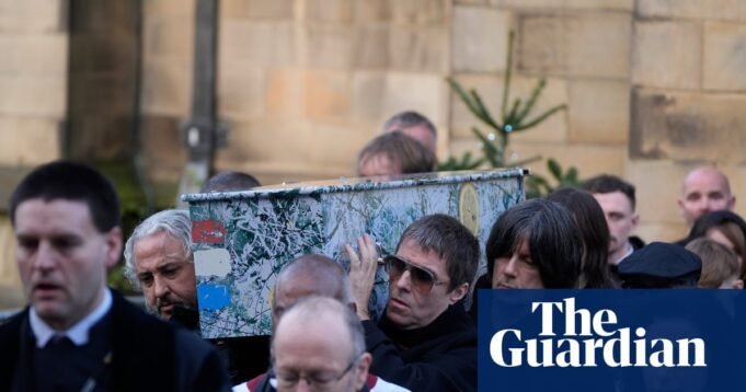 Paulo Weller, Liam GallagherPeter Hook, Tim Burgess, Baez, David Beckham e Gary Neville estavam entre os enlutados no serviço religioso na Catedral de Manchester na manhã de segunda-feira. Havia uma multidão de fãs reunidos na estrada do lado de fora.