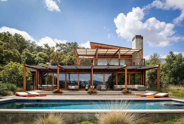 A propriedade está situada em 29 acres de terreno e consiste em uma moderna casa de três quartos com quatro banheiros, academia separada, piscina e duas casas de hóspedes.