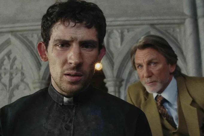 história: O terceiro filme da série de mistério e assassinato Knives Out se passa na Igreja Católica de Nossa Senhora da Eterna Perseverança. Esta é a paróquia de Monsenhor Wicks (Josh Brolin), sacerdote que seus seguidores consideram um deus vivo. As autoridades da Igreja nomeiam o jovem Padre Judd (Josh O’Connor) para a paróquia do Monsenhor Wick, mas o homem mais velho se ressente da intrusão. Um crime impossível ocorre. Alguém é assassinado, sozinho em uma pequena sala, o que chama a atenção do consultor investigativo Benoît Blanc (Daniel Craig).
