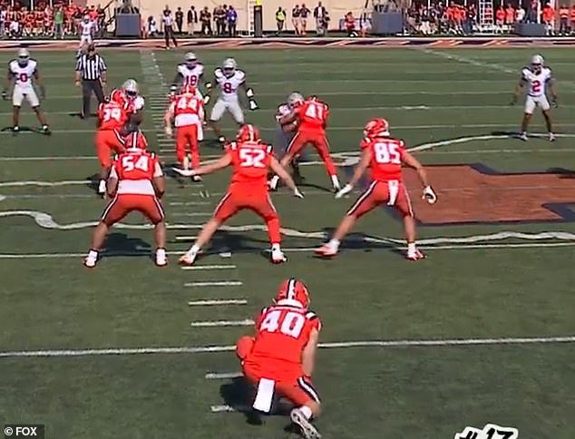 O apostador foi derrubado a ponto de seu joelho tocar o campo, o que significa que Illinois perdeu 14 jardas na jogada.