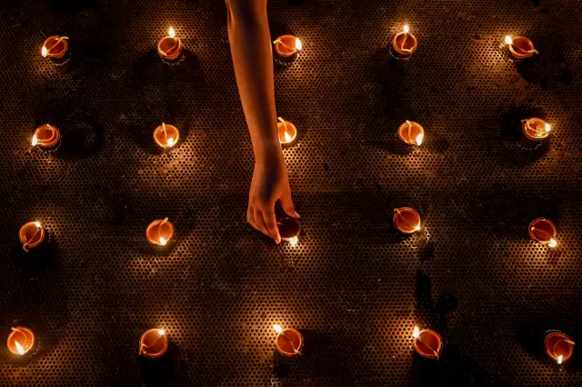 O festival hindu de Diwali marca o triunfo da luz sobre as trevas e do bem sobre o mal e é celebrado com velas e fogos de artifício.