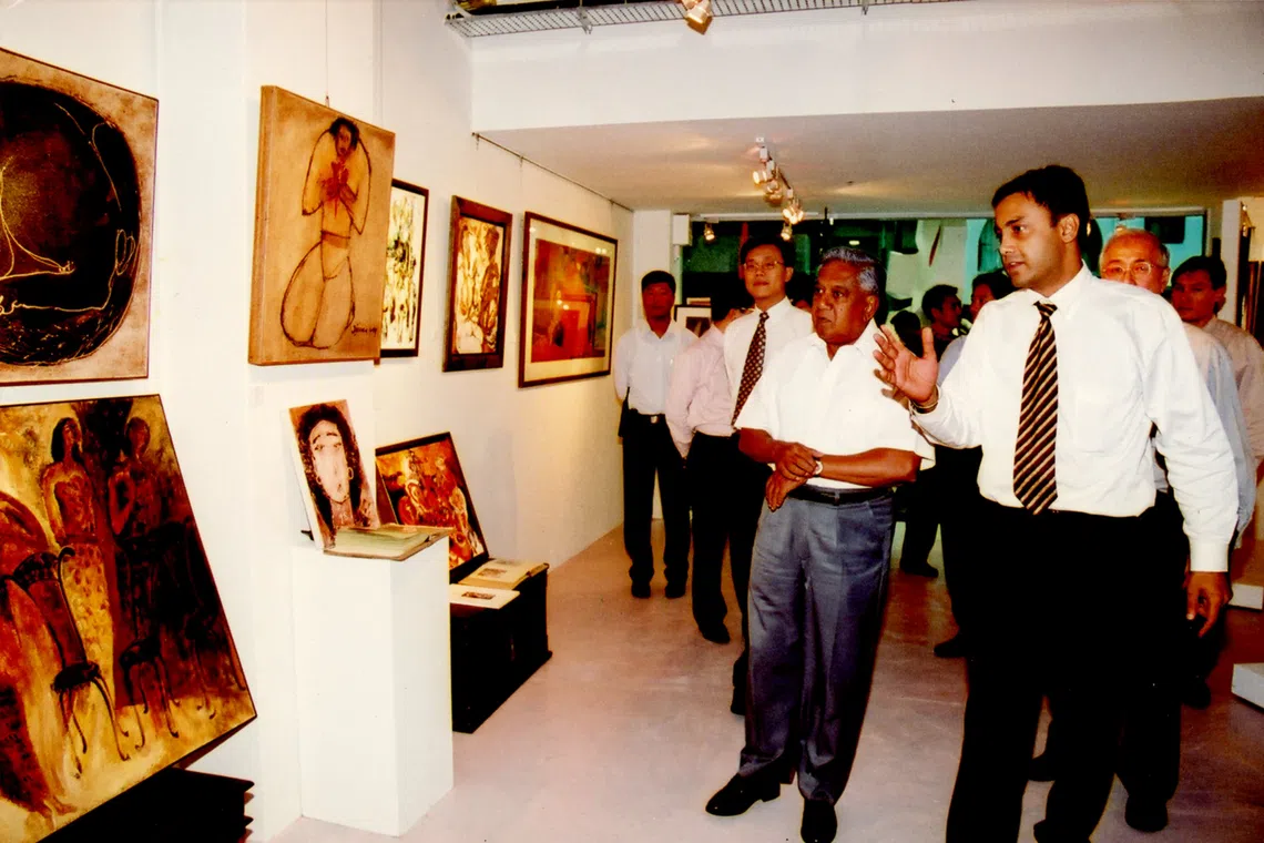O fundador da Gaja Gallery, Jasdeep Sandhu, e o então presidente SR Nathan na galeria Hill Street em 2000.