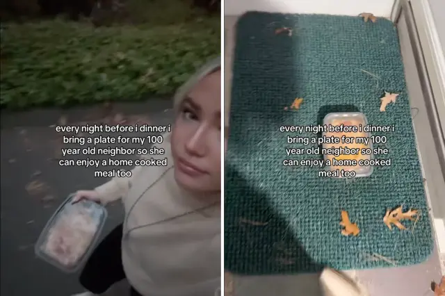 No clipe viral, Darling escreveu: “Todas as noites, antes do jantar, trago um prato para minha vizinha de 100 anos para que ela possa desfrutar de uma refeição caseira”, sobrepondo o vídeo com a legenda.
