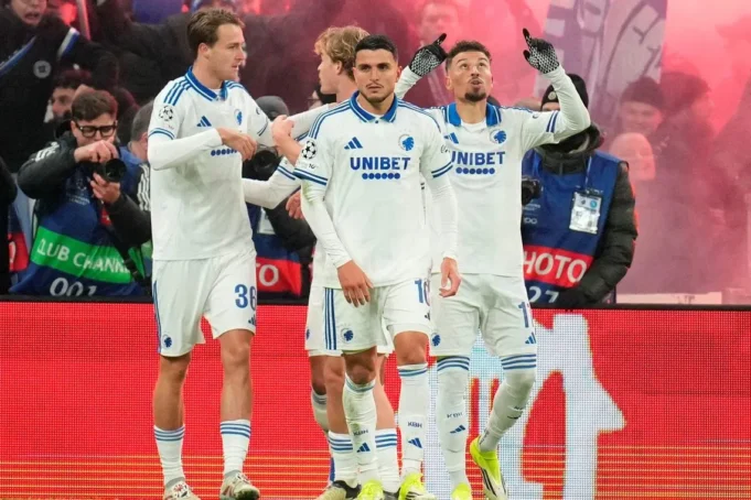 COPENHAGUE, 20 de janeiro – O substituto Jordan Larsson marcou o gol de empate no final do jogo, na vitória do FC Copenhagen, de 10 jogadores, sobre o empate em 1 a 1 com o Napoli, na terça-feira, pela Liga dos Campeões.