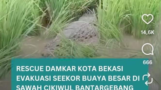 O animal selvagem não estava no rio, mas estava ‘sentado’ no rio campo de arroz Propriedade de moradores, está destruindo plantações de arroz. O momento em que o crocodilo foi descoberto foi registrado em vídeo e amplamente divulgado nas redes sociais. Um deles foi postado pela conta do Instagram @infobekasi.
