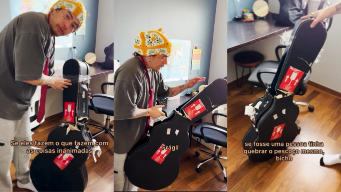 Henderson Nunes mostra guitarra quebrada em voo e bate em companhia aérea: ‘Reflita sobre cuidados com o som’ O influenciador Henderson Nunes usou as redes sociais, nesta segunda-feira (20), para relatar que sua guitarra quebrou durante um voo. O artista não informou qual companhia aérea foi responsável pelo voo nem quando a situação ocorreu. “Vamos falar da palavra cuidado, da palavra carinho, da palavra amor. É um problema que já vivi nas companhias aéreas. As pessoas me dizem ‘Por que você não leva mais seu cachorro nas viagens?’, se o fazem com objetos físicos”, disse. ✅ Acompanhe o canal g1 Piauí no Instagram no WhatsApp, Henderson mostrou o violão, que estava com o braço quebrado. A tampa do dispositivo também foi danificada. O artista disse ainda que está passando por isso pela segunda vez. “Minha intenção aqui não é prejudicar ninguém, não atirar em ninguém. Sei que todo mundo trabalha, todo mundo está estressado, todo mundo não sabe o que fazer, tudo é caro, tudo é difícil, é difícil manter o amor trabalhando”, disse. “Então, é só pedir a vocês, trabalhadores brasileiros, que atuam em qualquer área, que reflitam as palavras de carinho, de cuidado. Porque toda vez que a gente pega coisas pequenas e quando a gente chega quebra coisas pequenas (…) Se fosse uma pessoa quebrariam mesmo o pescoço, animais”, finalizou. O que fazer se sua bagagem for adulterada O g1 conversou com Filipe Alencar, advogado especializado em direito do passageiro aéreo, e reuniu orientações sobre o que fazer caso sua bagagem seja adulterada durante uma viagem aérea. Segundo os profissionais, assim que o passageiro perceber que sua bagagem está danificada ou perdida, deve procurar um funcionário da companhia aérea, geralmente localizado próximo à esteira de bagagens, e solicitar o Relatório de Irregularidade de Bagagem (RIB). Felipe Alencar afirma: “Esse documento é necessário para comprovar que o dano ocorreu no voo, parte principal da prova do pedido de indenização. É importante destacar que, mesmo que o funcionário da companhia aérea diga que o RIB só pode ser feito por telefone ou online, o passageiro tem o direito de exigir documentos físicos no aeroporto”, afirma Felipe Alencar. Segundo os advogados, se os passageiros saírem do aeroporto para reclamar, a companhia aérea pode alegar que não houve danos durante o transporte aéreo. Ele recomenda, portanto, que os clientes guardem provas como: fotos e vídeos de bagagens antes e depois da viagem; Registro de reclamação (por telefone, e-mail ou site consumidor.gov.br). “Se o problema for percebido após a saída do aeroporto, a Anac (Agência Nacional de Aviação Civil) dá ao passageiro até sete dias para registrar reclamação na companhia aérea e solicitar o RIB”, explicou. Para entrar com uma ação judicial e pedir indenização, porém, o passageiro tem até cinco anos após o sinistro. “Quando o passageiro despacha sua bagagem, ele paga pelo serviço de transporte e acredita que a bagagem será entregue no destino em perfeitas condições. Caso haja algum extravio, dano ou violação, a companhia aérea é responsável pelos danos materiais e morais decorrentes do incidente”, disse. Wunderson Nunes mostra guitarra quebrada em voo e bate em companhia aérea: ‘Reflete cuidados com o som’ Reprodução do vídeo: Assista ao vídeo mais visto do Red Club*