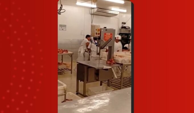 Homens trocam socos em supermercado de Manaus; Imagens de vídeo que circulam nas redes sociais mostram dois homens brigando no açougue de um supermercado em Manaus. A cena foi gravada por clientes no local. (Veja acima) No vídeo, o filmador questiona por que ninguém consegue separar os envolvidos. Pelo menos sete pessoas tentam acabar com a confusão. Ele comenta que “a brincadeira tem limite”. A causa da briga ou em qual unidade da rede ocorreu o incidente ainda não é conhecida. Até a última atualização desta reportagem, o supermercado não fez comentários. Homens trocam socos em supermercado de Manaus; Reprodução de vídeo
