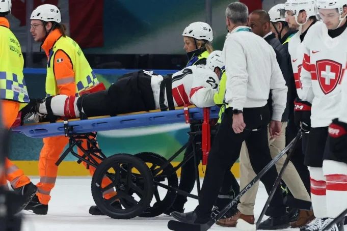 O ala do Los Angeles Kings deixou o jogo faltando menos de três minutos para o fim do segundo jogo da equipe suíça na fase de grupos do torneio masculino de hóquei no gelo em Milão, após colidir com o atacante canadense Tom Wilson perto dos tabuleiros.