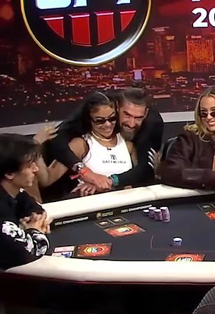 Depois que Love fez uma jogada de pôquer fora das câmeras, Phelps – que já havia sido eliminado da competição – voltou à mesa para abraçar o homem impressionante.