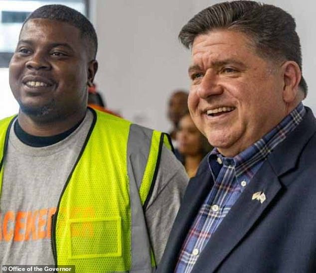 Democrático Illinois O governador JB Pritjkar foi visto posando com uma pessoa que trabalhava como ‘Pazeweper’ no estado, presa por matar um pai enquanto roubava um pai na Louis Witon Store há menos de uma semana.