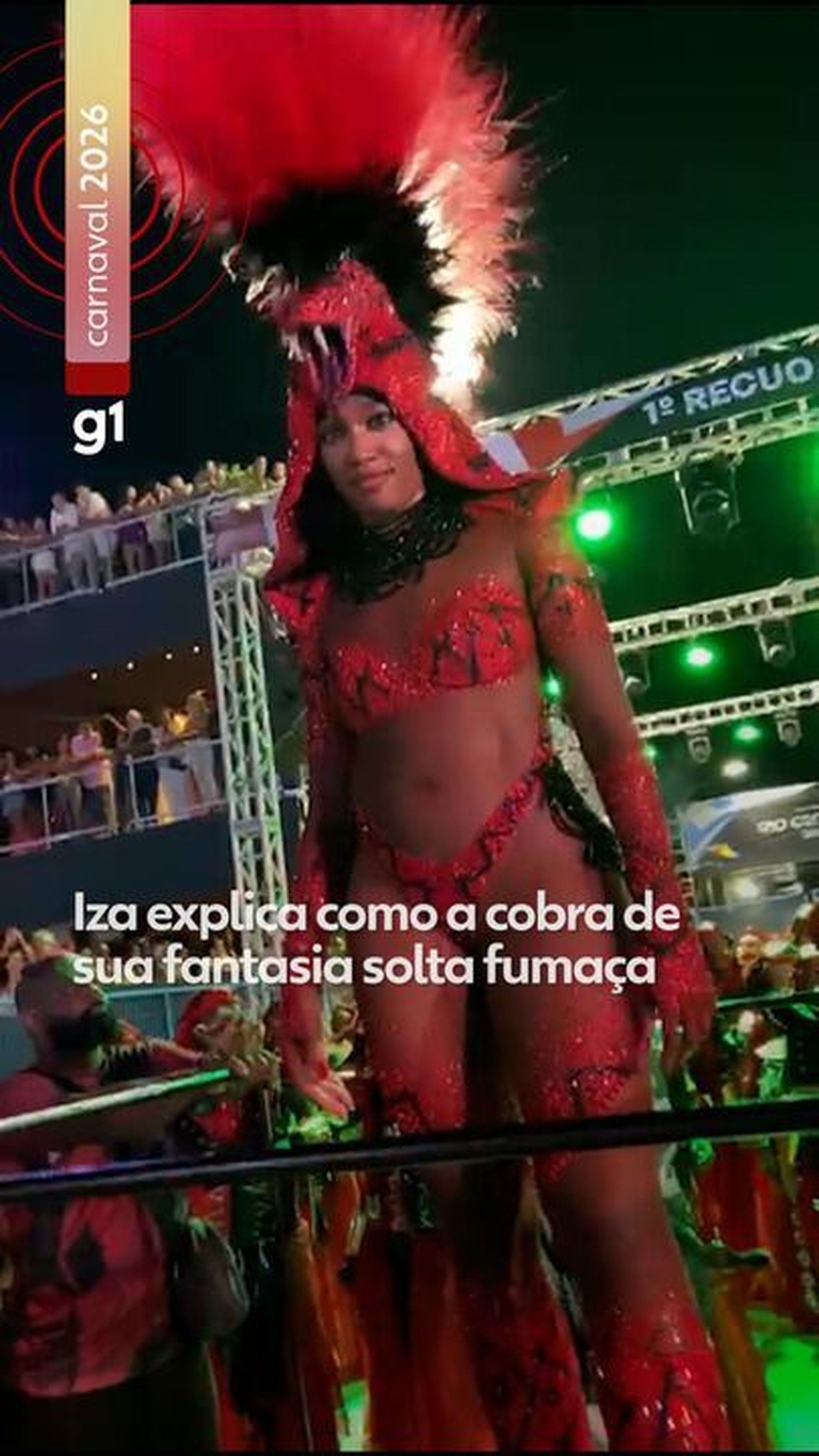 Iza explica como a cobra do vestido Imperatriz emite fumaça Pouco antes de entrar na avenida, Iza mostrou como acionou a cabeça do vestido, uma cobra que soltou fumaça pela boca no Desfile da Imperatriz Leopoldina neste domingo (16). A cantora G1 mostrou que em sua mão foi acionado um dispositivo para liberar fumaça. O vestido faz referência à capa do álbum “Pecado” de Ney Matogrosso, lançado em 1977. A maquiagem incluía um efeito nas pálpebras da cantora que dava a impressão de um olho de cobra quando Iza fechava os olhos. Iza mostra na palma da mão um sensor que aciona fumaça de cobra A escolha pela cobra se justifica pela tipografia usada para escrever o título do álbum de Thais Espírito Santo/G1. No álbum, o nome que funciona (PECADO) é escrito utilizando a deformação do corpo de uma cobra como desenho para soletrar a proposta de palavra escolhida para dar título ao álbum. Em entrevista ao G1, Iza comemorou a volta à escola, bairro onde nasceu e cresceu, em Ramos, zona norte do Rio. Detalhes da fantasia de Iza Leo Franco/AgNews Iza mostra sua fantasia de cobra para “fumar” no desfile da Imperatrice “Sempre falo que é papel da escola e não meu e estou muito feliz de voltar para essa oportunidade. O artista disse ainda que é uma grande paixão celebrar a vida e a trajetória de Ne Matogroso, homenageada pela Rainha de Ramos neste carnaval. Iza vem de cobra que fuma em Imperatriz Reprodução/TV Globo Iza vem desfilar em Sapucaí Imperatriz Thais Espírito Santo/g1 “É uma emoção que ele vai cruzar esse caminho sabendo que são milhares de pessoas que se empenham em brasá-lo no melhor carro e nós temos o compromisso de homenagear cada família. Crescemos com isso em casa, com essa referência”, afirma. A escola é o segundo desfile do primeiro dia do grupo especial do Carnaval carioca. Leia mais desde o texto do plugin primário ‘Homem com H’ até ‘Vira’, entenda as referências à obra de Ney Matogrosso no samba Iza da Imperatriz