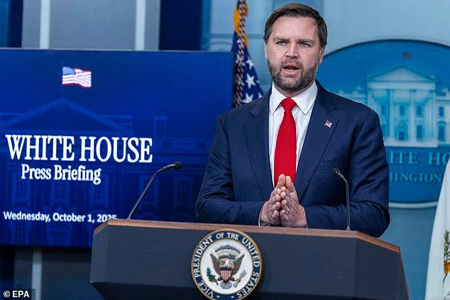 O vice -presidente JD Vance disse durante o briefing de quarta -feira que não acreditava que o governo federal durasse muito devido a ‘rachaduras’ devido ao desligamento dos democratas.