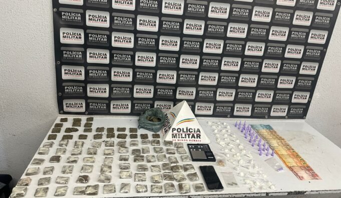 Ainda durante a ocorrência, os militares foram até um imóvel que o jovem alugava e no local encontraram mais 90 tabletes de maconha, 40 pacotes de cocaína, 28 pinos de cocaína, uma pedra de crack, além de duas munições calibre 22. e um equilíbrio perfeito.