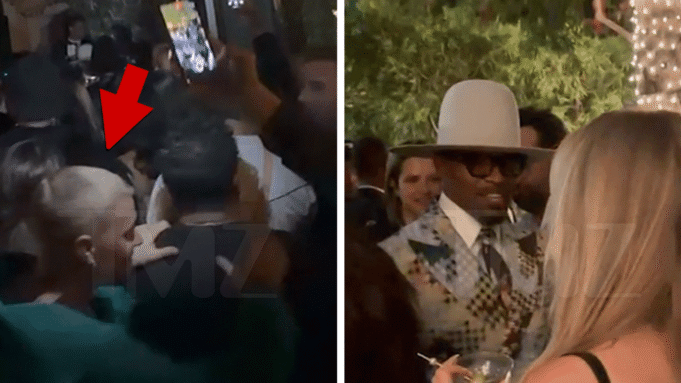 Uma das galas mais loucas foi realizada no Beverly Hills Hotel… com um elenco repleto de estrelas Justin Bieber, Laurin Hill, jamie raposae muito mais. No vídeo de dentro da festa, Bieber ainda mostra o peito nu – andando no meio da multidão com um moletom aberto enquanto salta com a mão nos ombros do amigo. Kanye West“Gold Digger”.
