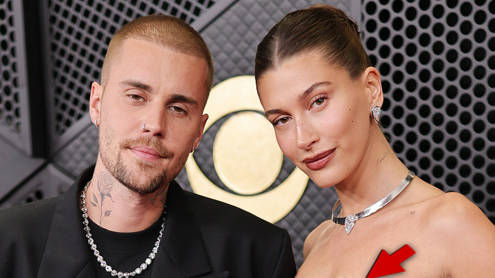 Justino E hailey bieber Ela não apenas fez uma declaração de moda quando andou no tapete vermelho do Grammy… ela também fez uma declaração política ao usar um broche “ICE OUT” na maior noite da música.