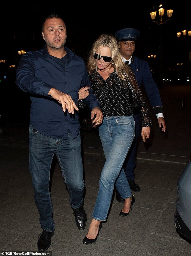 Kate Moss Depois de mais uma noite em Paris na terça -feira, ele precisava da ajuda de seu guarda -costas depois de voltar para o hotel.