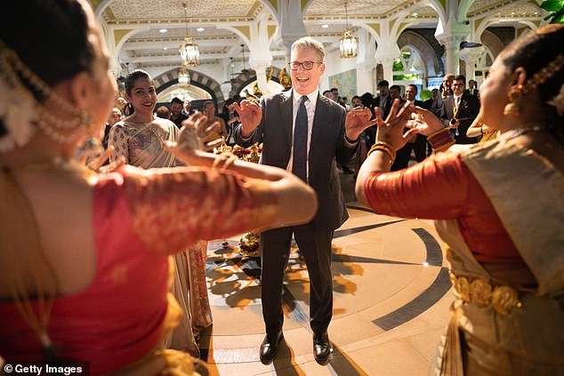Um fotógrafo capturou o momento em que Keir Starmer desfrutou de um breve boogie ao som de música em uma celebração do Diwali em Mumbai