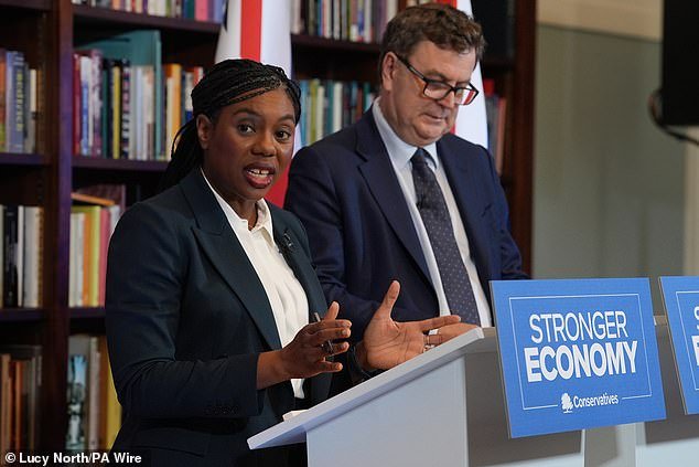 Fazendo uma crítica directa ao seu oponente da reforma, a Sra. Badenoch disse: ‘Neste momento, Nigel Farage e Zia Yusuf estão a ter uma conferência de imprensa a falar sobre como vão poupar dinheiro, mas na realidade querem aumentar os benefícios eliminando o limite de benefícios para dois filhos.