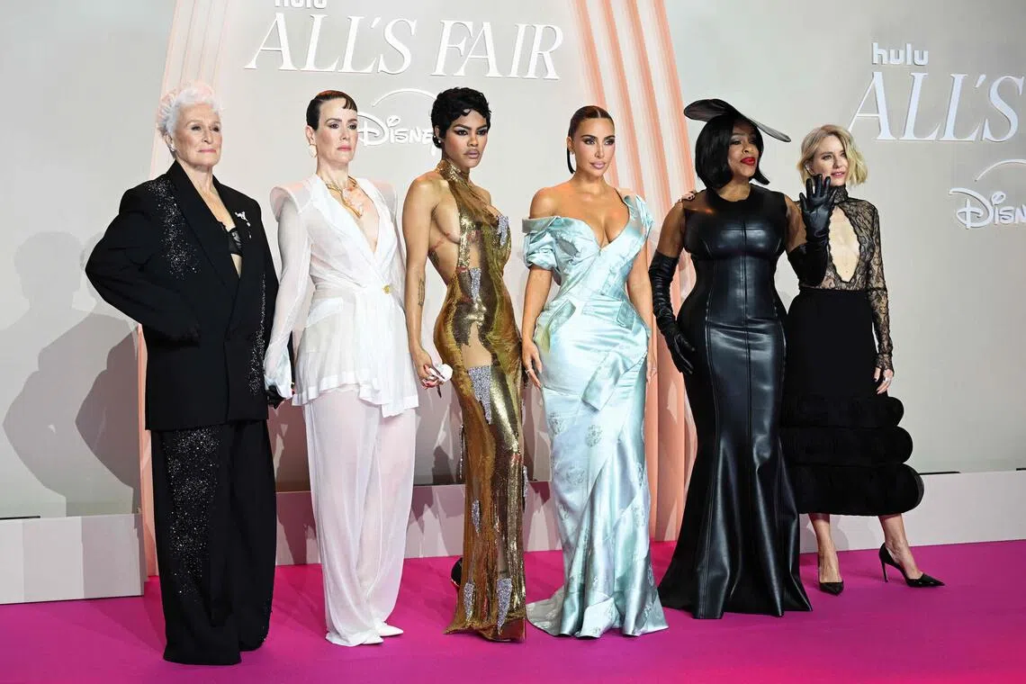 (A partir da esquerda) As atrizes Glenn Close, Sarah Paulson, Teyana Taylor, Kim Kardashian, Niecy Nash-Betts e Naomi Watts participam de uma sessão fotográfica para a estreia da All’s Fair em Paris, no dia 21 de outubro.