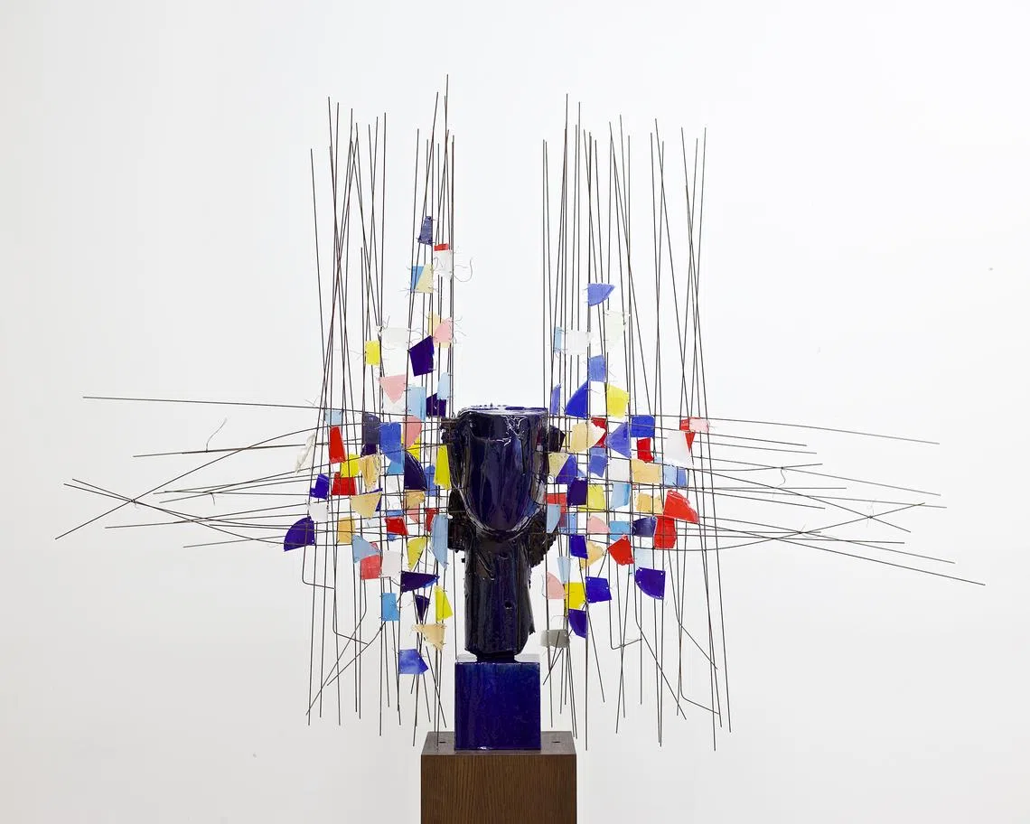 Os visitantes da Opera Gallery encontrarão principalmente sua série Cabeza. Bustos de bronze e resina são coroados com uma variedade de cocares dramáticos feitos de materiais mais industriais, como arame e arame. ilha de murano vidro. Essas peças ficariam em casa em uma vitrine de alta costura e teriam sido inspiradas no encontro do artista com uma mulher em um parque cercado por borboletas.