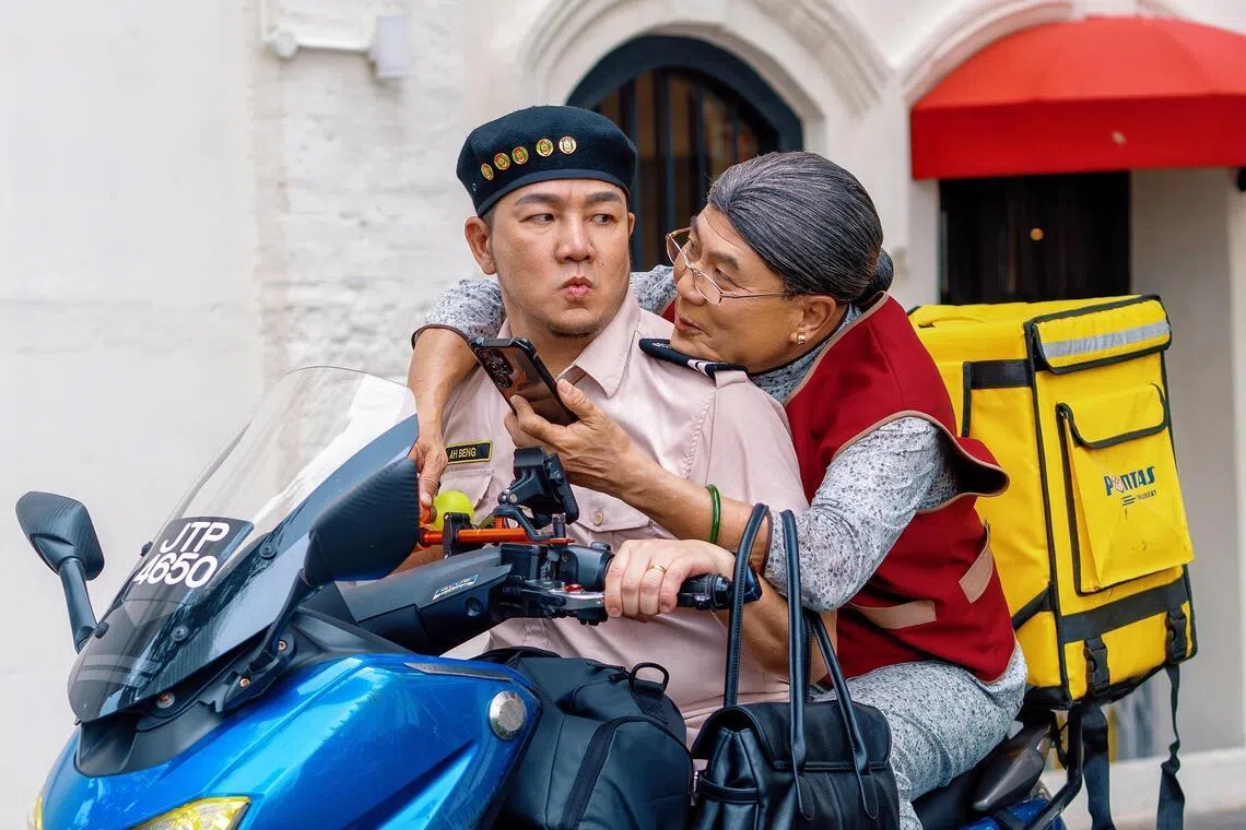 Jack Lim (à esquerda) e Jack Neo em uma cena do filme de comédia “Liang Po Po vs. Ah Beng”.