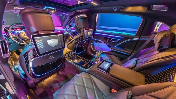 Este Maybach possui conexões USB e HDMI na parte traseira, permitindo que você conecte totalmente seu laptop enquanto executa uma estação de trabalho de áudio digital como o Pro Tools com vídeo e áudio espacial, criando o chamado “estúdio de som Dolby Atmos totalmente equipado”.