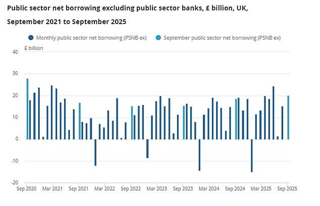 Raquel Reeves Mais más notícias hoje, já que os empréstimos do governo atingiram um novo recorde em setembro, fora da Covid.