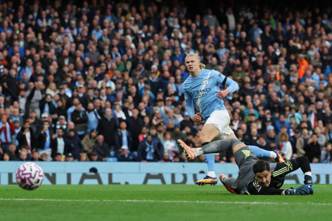 O jogador de 25 anos, que correu como um trator o dia todo na defesa do United, completou o duplo no 68º, quando os visitantes perderam a bola. Haaland, alinhado no círculo central, superou facilmente Harry Maguire, movendo a bola de Bernardo Silva para a frente, individualmente contra o Bay Indal.