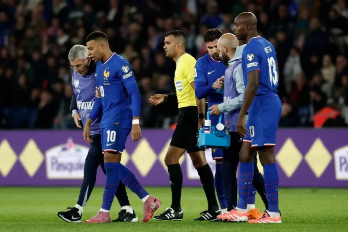 O capitão francês Kylian Mbappé perderá o jogo de segunda-feira pelas eliminatórias da Copa do Mundo contra a Islândia, depois de uma lesão no tornozelo direito durante a vitória por 3 a 0 sobre o Azerbaijão, anunciou a Federação Francesa de Futebol (FFF) neste sábado.