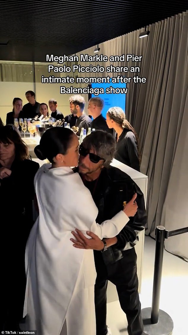 Meghan Markle compartilhou um beijo estranho com a estilista italiana Pear Paolo Picioli enquanto fez uma aparição surpreendente na semana de moda de Paris