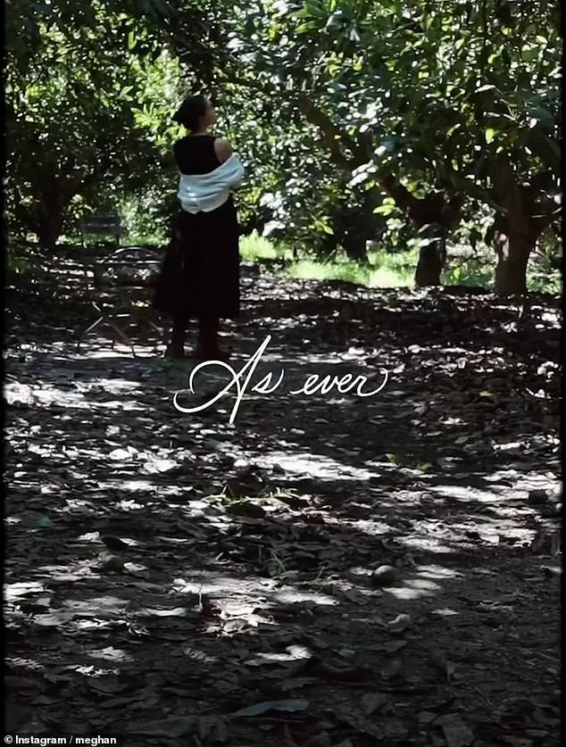 duquesa de sussexA mulher de 44 anos compartilhou um vídeo no Instagram na noite de quinta-feira em que ela passeava casualmente entre as árvores usando um vestido preto e um cardigã branco.