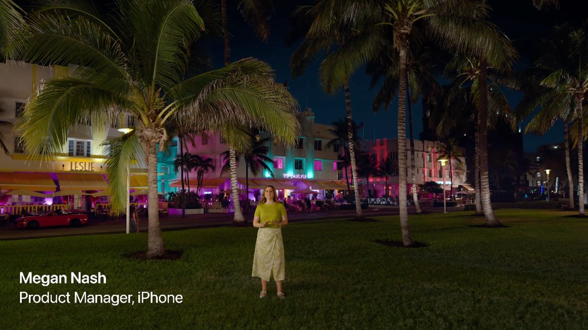 O gerente de produtos do iPhone, Megan Nash, falou sobre a nova câmera principal de 48 megapixels do iPhone 17 durante o evento. Isso significa que a Apple chama de fusão dupla. Atrás dela está o icônico cenário de tiras de Miami, e os fãs do GTA se perguntavam se a Apple anunciaria um acordo com a Rockstar Games.