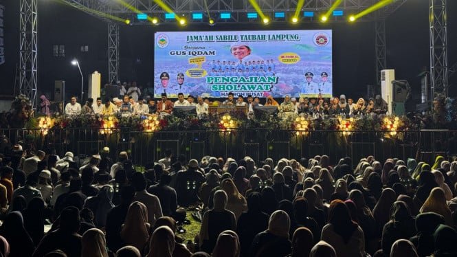 Leste de LampungViva – Milhares de peregrinos muçulmanos lotaram a Praça da Vila Sidorejo, distrito de Sekampung Udik, Regência de East Lampung, no sábado, 21 de dezembro de 2025. A congregação participou de um grande estudo teológico que incluiu o palestrante nacional Gus Ikhdam.