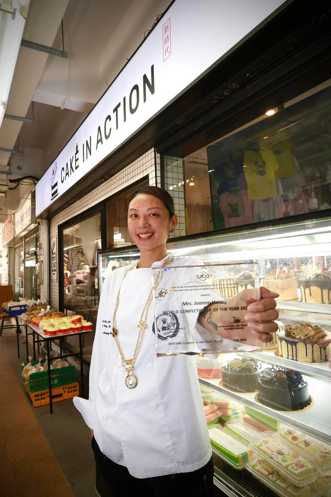 A Sra. João Huang foi premiada como Confeiteira Mundial do Ano de 2025 pela União Internacional dos Fabricantes de Panificação e Pastelaria em uma cerimônia de premiação em São Paulo, Brasil.