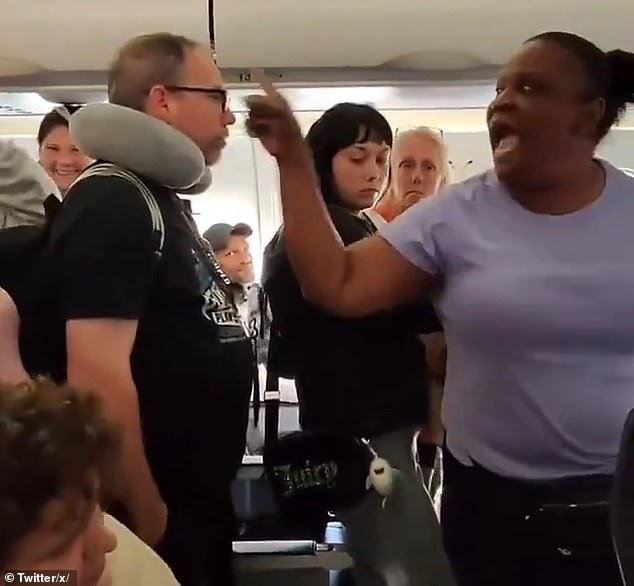 A mulher foi ouvida gritando com outros passageiros para que deixassem sua filha, que ela alegou estar sentada várias fileiras atrás, atravessar o corredor estreito para chegar até ela.