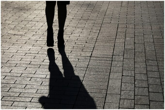 Imagem stock de mulher andando à noite‘Talvez ele estivesse com medo’