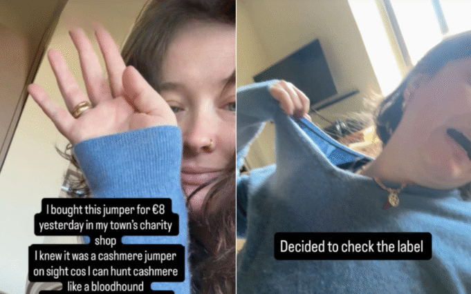 Uma mulher tirou a sorte grande depois de pagar o equivalente a apenas US$ 9 por um suéter de caxemira, apenas para descobrir seu verdadeiro valor mais tarde, em casa.